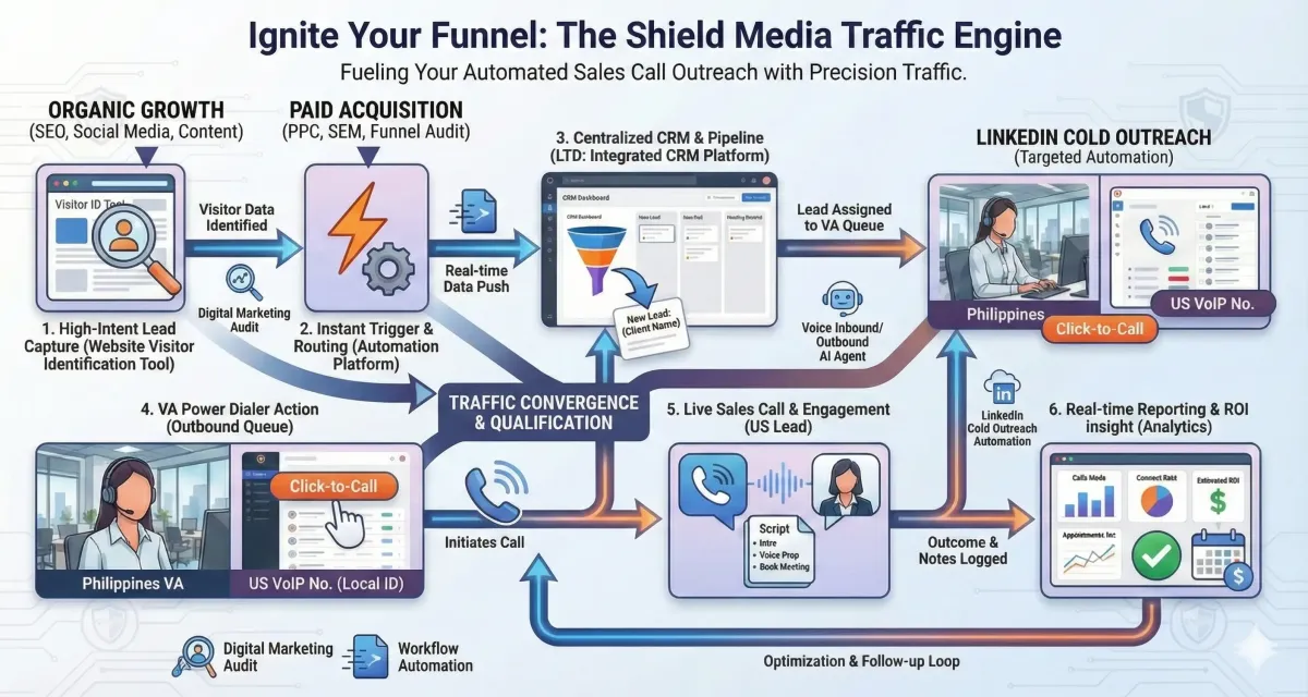 Traditional marketing drives traffic, but traffic doesn't pay the bills. We build your 24/7 Sales Engine by combining expert SEO & PPC with intelligent Voice AI Agents and Workflow Automation. From Brisbane to Melbourne, we help businesses capture, qualify, and convert leads instantly—without lifting a finger.